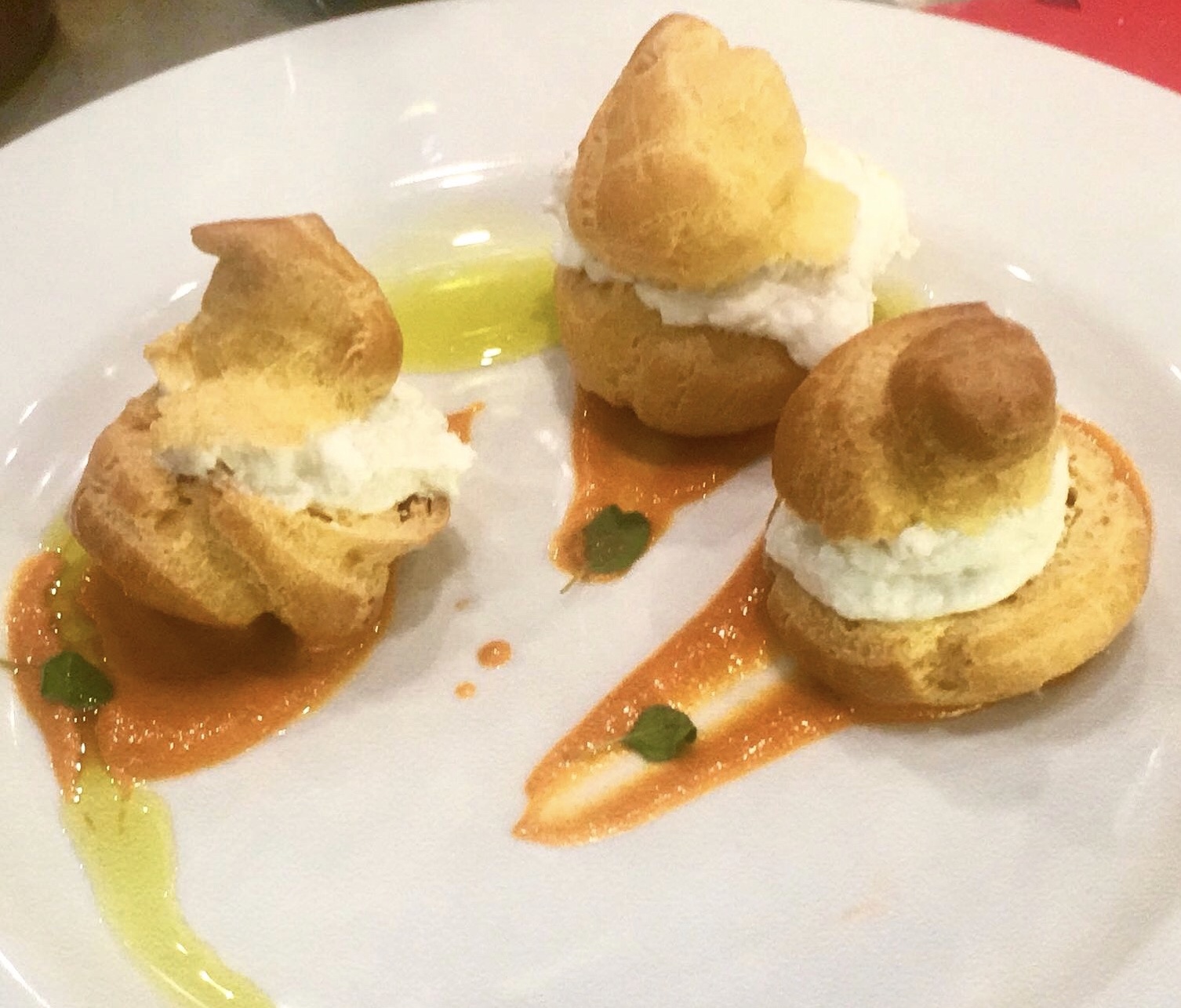 bignè ricotta alici e mozzarella con salsa alla pizzaiola